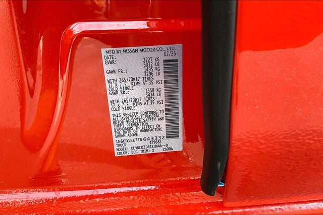 2026 Nissan Frontier PRO-4X Afterburn Oran 4D Crew Cab V6 9-Speed Automatic with Overdrive 4WD