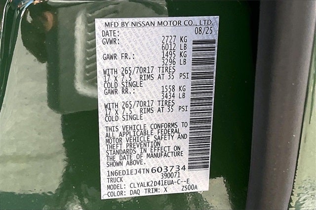 2026 Nissan Frontier PRO-X Green Metallic 4D Crew Cab 3.8L DI DOHC 24V V6 9-Speed Automatic with Overdrive RWD