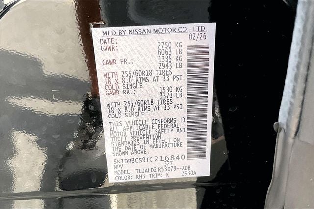 2026 Nissan Pathfinder SL Super Black 4D Sport Utility 3.5L V6 DOHC 9-Speed Automatic FWD