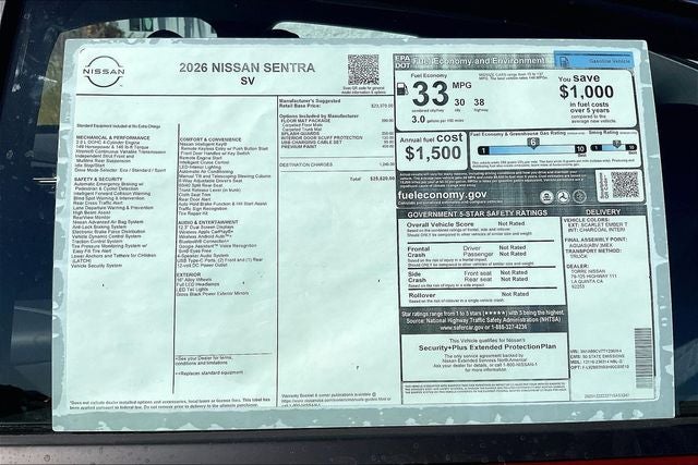 2026 Nissan Sentra SV Scarlet 4D Sedan 2.0L I4 DOHC CVT with Xtronic FWD