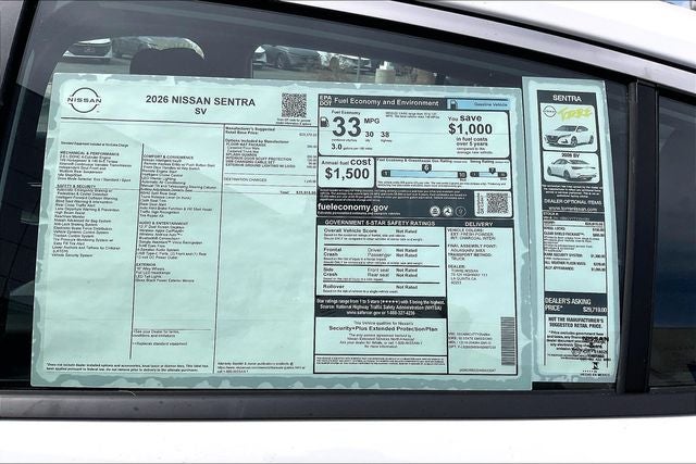 2026 Nissan Sentra SV Fresh Powder 4D Sedan 2.0L I4 DOHC CVT with Xtronic FWD