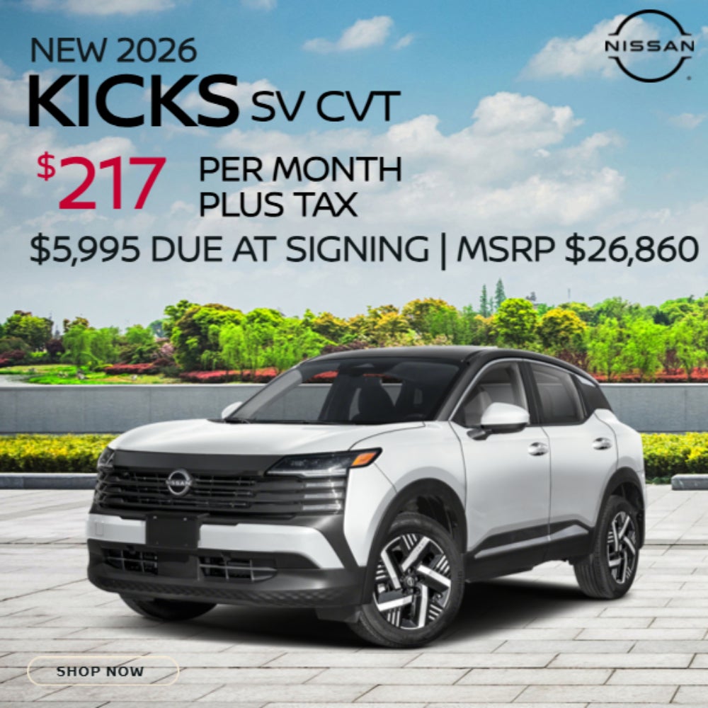 VIN# 3N8AP6CE9TL380462, MODEL# 21316, STK# N10495. * $217.68 monthly plus tax based upon agreed value of $25,830.00 includes $625.00 NMAC Lease Cash, $5,995.00 customer cash down plus tax, title, license, electronic vehicle filing fee. Lease is for 36 months at 5,000 miles per year $0.25 cent per mileage charge per mile over 15,000 miles. No security deposit required. All new vehicles advertised reflect all applicable discounts in price which may include Nissan customer cash rebate, holiday or Nissan bonus cash and dealer discount. All advertised prices exclude government fees, taxes and dealer document prep charge. Pre-installed dealer accessories are additional charge see dealer for details. Buyer must qualify with a credit score above average. One at this price. Offer ends close of business 4/30/26.