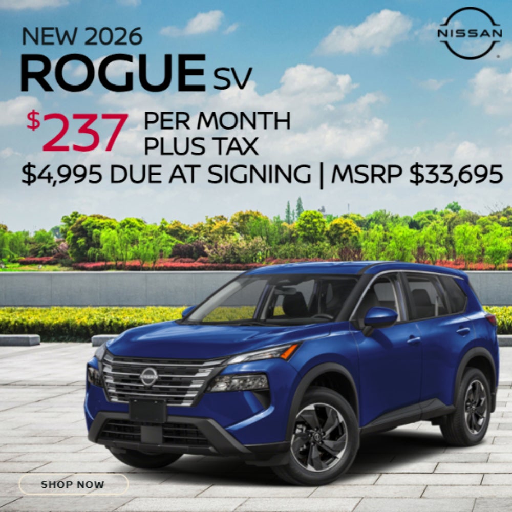 Elevate your drive with the 2026 Nissan Rogue SV at Torre Nissan. Featuring advanced safety Shield 360 and a spacious interior designed for Cathedral City families. Includes $1,325 NMAC Lease Cash. Visit us today for a test drive! [MSRP $31,870. Offer ends 4/30/26.]