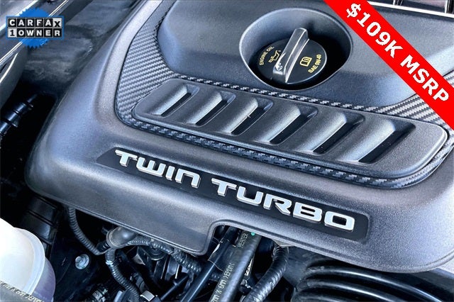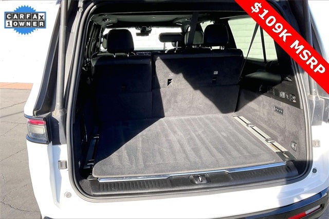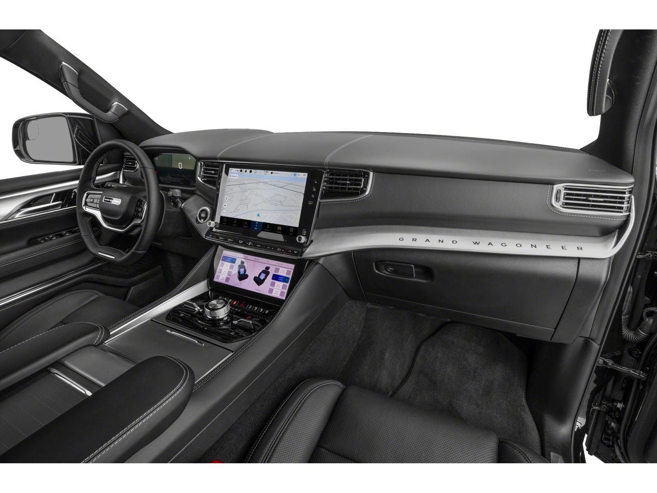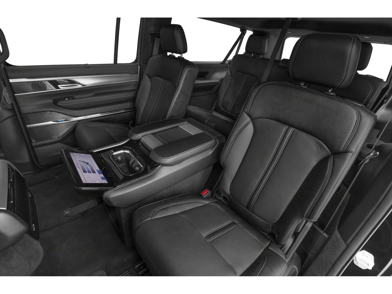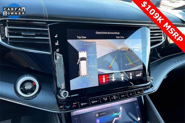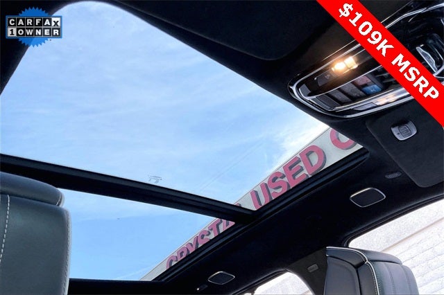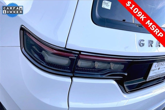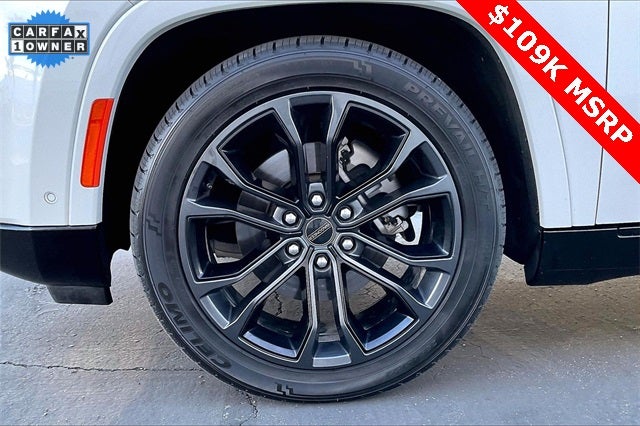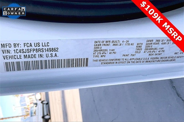 Obsidian Appearance Package, Quick Order Package 28T Obsidian (23 Speaker McIntosh Reference Audio System, Adjustable Roof Rail Crossbars, Black Interior Accents, Black Roof, Front Console Cooler, Front Passenger Interactive Display, Gloss Black Upper & Lower DLO Molding, Piano Black Exterior Accents, Rearview Autodim Digital Display Mirror, Ventilated Rear Seats, and Wheels: 22 x 9.0 Tinted Polished w/Black Insert), Two Tone Paint Group, Navigation System, 19 Speakers, 3rd row seats: bench, 4-Wheel Disc Brakes, ABS brakes, Adjustable pedals, Air Conditioning, Alloy wheels, AM/FM radio: SiriusXM with 360L, Anti-whiplash front head restraints, Apple CarPlay/Android Auto, Audio memory, Auto High-beam Headlights, Auto-dimming door mirrors, Auto-dimming Rear-View mirror, Auto-leveling suspension, Automatic temperature control, Brake assist, Bumpers: body-color, Compass, Delay-off headlights, Driver door bin, Driver vanity mirror, Driver's Seat Mounted Armrest, Dual front impact airbags, Dual front side impact airbags, Electronic Stability Control, Emergency communication system, Four wheel independent suspension, Front anti-roll bar, Front Bucket Seats, Front Center Armrest w/Storage, Front dual zone A/C, Front fog lights, Front reading lights, Fully automatic headlights, Garage door transmitter, Genuine wood console insert, Genuine wood dashboard insert, Genuine wood door panel insert, Heads-Up Display, Heated door mirrors, Heated front seats, Heated rear seats, Heated steering wheel, Illuminated entry, Knee airbag, Leather steering wheel, Leather Trimmed Bucket Seats, Low tire pressure warning, Memory seat, Normal Duty Suspension, Occupant sensing airbag, Outside temperature display, Overhead airbag, Overhead console, Panic alarm, Passenger door bin, Passenger seat mounted armrest, Passenger vanity mirror, Pedal memory, Power adjustable front head restraints, Power door mirrors, Power driver seat, Power Liftgate, Power moonroof, Power passenger seat, Power steering, Power windows, Radio data system, Radio: Uconnect 5 Nav w/12.0 Display, Rain sensing wipers, Rear air conditioning, Rear anti-roll bar, Rear dual zone A/C, Rear reading lights, Rear seat center armrest, Rear window defroster, Rear window wiper, Reclining 3rd row seat, Remote keyless entry, Security system, Speed control, Speed-sensing steering, Speed-Sensitive Wipers, Split folding rear seat, Steering wheel memory, Steering wheel mounted audio controls, Tachometer, Telescoping steering wheel, Tilt steering wheel, Traction control, Trip computer, Turn signal indicator mirrors, Variably intermittent wipers, Ventilated front seats, and Voltmeter.