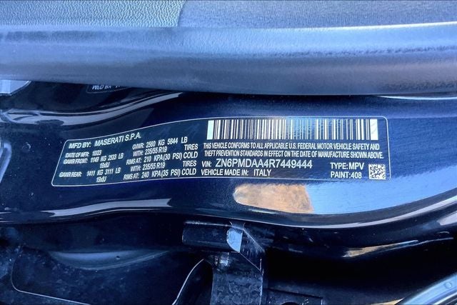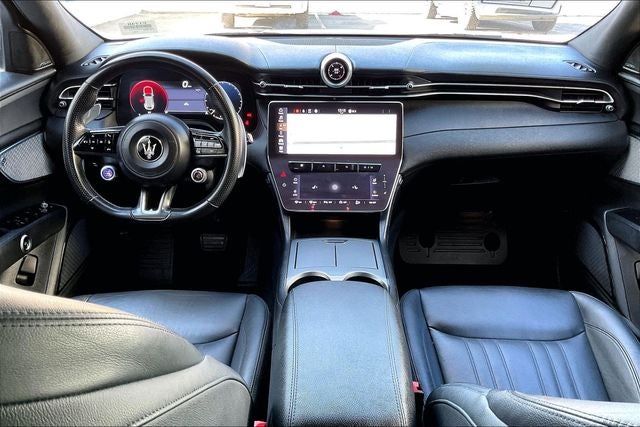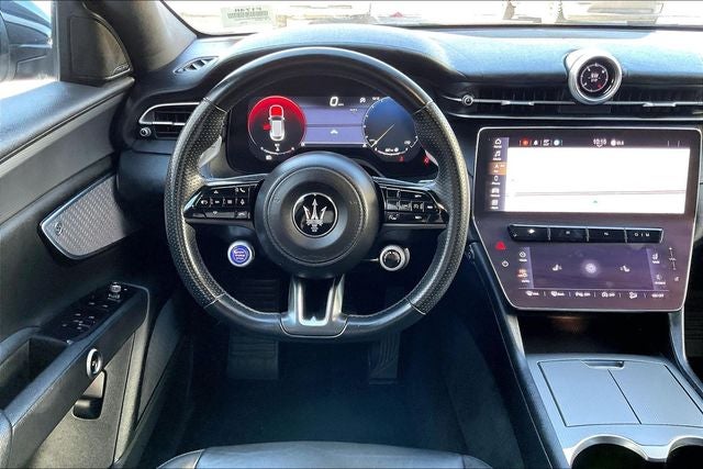 10-Way Heated Power Front Seats, 14 Speakers, 3.27 Axle Ratio, 4-Wheel Disc Brakes, ABS brakes, Air Conditioning, Alloy wheels, AM/FM radio: SiriusXM, Apple CarPlay/Android Auto, Auto High-beam Headlights, Auto-dimming door mirrors, Auto-dimming Rear-View mirror, Automatic temperature control, Brake assist, Bumpers: body-color, Compass, Delay-off headlights, Driver door bin, Driver vanity mirror, Dual front impact airbags, Dual front side impact airbags, Electronic Stability Control, Emergency communication system: Maserati Connect, Exterior Parking Camera Rear, Four wheel independent suspension, Front anti-roll bar, Front Bucket Seats, Front Center Armrest, Front dual zone A/C, Front reading lights, Garage door transmitter: HomeLink, Heated door mirrors, Heated front seats, Illuminated entry, Leather Seat Upholstery, Leather steering wheel, Low tire pressure warning, Memory seat, Navigation System, Occupant sensing airbag, Outside temperature display, Overhead airbag, Overhead console, Passenger door bin, Passenger vanity mirror, Power door mirrors, Power driver seat, Power Liftgate, Power passenger seat, Power steering, Power windows, Radio data system, Radio: Sonus Faber 860 Watts Premium Audio System, Rain sensing wipers, Rear anti-roll bar, Rear fog lights, Rear reading lights, Rear seat center armrest, Rear window defroster, Rear window wiper, Remote keyless entry, Security system, Speed control, Speed-sensing steering, Speed-Sensitive Wipers, Split folding rear seat, Spoiler, Steering wheel memory, Steering wheel mounted audio controls, Tachometer, Telescoping steering wheel, Tilt steering wheel, Traction control, Trip computer, Turn signal indicator mirrors, Variably intermittent wipers, Voltmeter, and Wheels: 19 Gloss Dark Thetis.