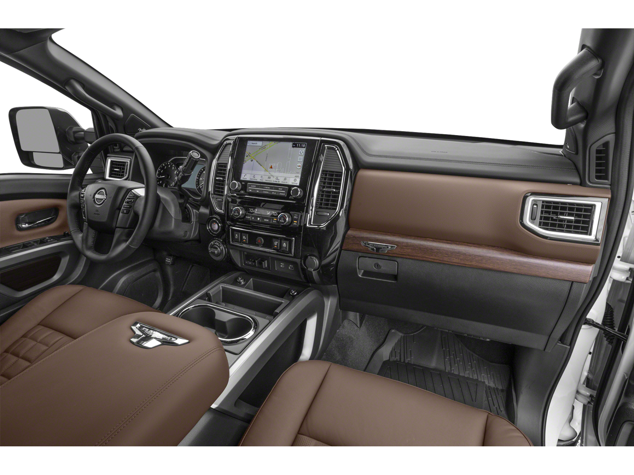 Monotone Paint Package (Body Color Front Bumper, Body Color Overfenders, and Body Color Rear Bumper), Moonroof Package (Dual Panel Panoramic Moonroof w/Tilt & Slide), Platinum Utility Package (Electronic Locking Tailgate, Rear Utility Bed Step, and Titan Box), Off Road Protection Package (K93), Navigation system: NissanConnect with Navigation and Services, 12 Speakers, 4-Wheel Disc Brakes, 4.083 Axle Ratio, ABS brakes, Air Conditioning, Alloy wheels, AM/FM radio: SiriusXM, Auto High-beam Headlights, Auto tilt-away steering wheel, Auto-dimming door mirrors, Auto-dimming Rear-View mirror, Automatic temperature control, Blind Spot Warning, Brake assist, Compass, Delay-off headlights, Driver door bin, Driver vanity mirror, Dual front impact airbags, Dual front side impact airbags, Electronic Stability Control, Emergency communication system: NissanConnect Services, Front anti-roll bar, Front Bucket Seats, Front Center Armrest, Front dual zone A/C, Front fog lights, Front reading lights, Front wheel independent suspension, Fully automatic headlights, Garage door transmitter: HomeLink, Genuine wood dashboard insert, Genuine wood door panel insert, Heated & Cooled Front Captain's Seats w/Memory, Heated door mirrors, Heated front seats, Heated rear seats, Heated steering wheel, Illuminated entry, Illuminated Kick Plate - Platinum, Knee airbag, Leather Shift Knob, Leather steering wheel, Low tire pressure warning, Memory seat, NissanConnect Services Powered By SiriusXM, Occupant sensing airbag, Outside temperature display, Overhead airbag, Overhead console, Panic alarm, Passenger door bin, Passenger vanity mirror, Platinum Reserve Mud Flaps, Power door mirrors, Power driver seat, Power passenger seat, Power steering, Power windows, Premium Leather Seat Trim, Radio data system, Radio: NissanConnect w/Navigation, Rain sensing wipers, Rear anti-roll bar, Rear seat center armrest, Rear step bumper, Rear window defroster, Remote keyless entry, Security system, Special Paint - Pearl White/Cardinal Red Metallic, Speed control, Speed-sensing steering, Speed-Sensitive Wipers, Split folding rear seat, Steering wheel memory, Steering wheel mounted audio controls, Tachometer, Telescoping steering wheel, Tilt steering wheel, Traction control, Turn signal indicator mirrors, Variably intermittent wipers, Ventilated front seats, Voltmeter, and Wheels: 20 x 7.5 Dark Painted & Machined Clad.
