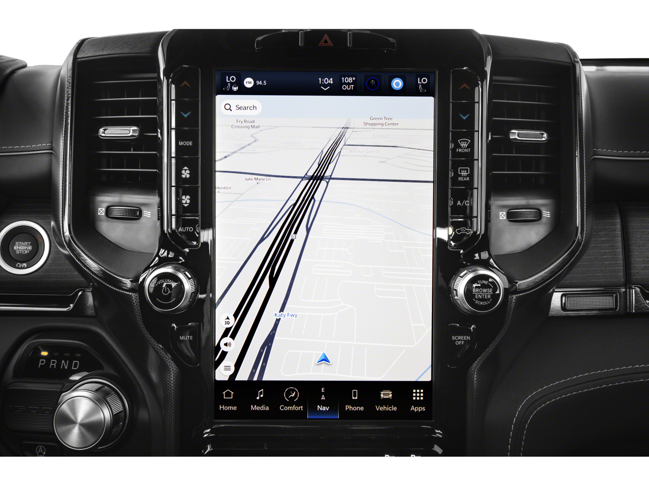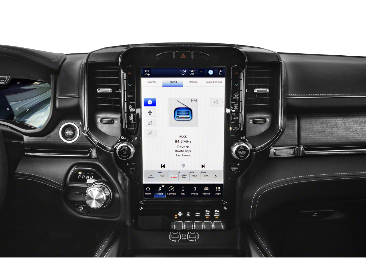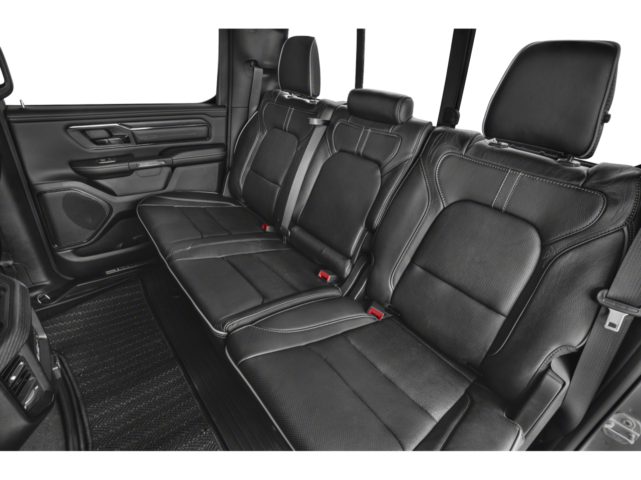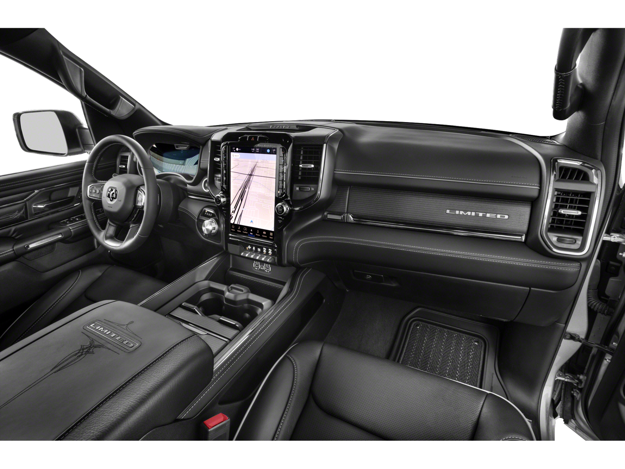 Limited Level 1 Equipment Group (Adaptive Cruise Control w/Stop & Go, Digital Rearview Mirror, harman/kardon 19 Speaker Premium Sound, Heads-Up Display, Lane Keep Assist, LED CHMSL Lamp, MOPAR Spray In Bedliner, Parallel & Perp Park Assist w/Stop, ParkSense Front/Rear Park Assist w/Stop, Pedestrian Emergency Braking, Pick-Up Box Lighting, Power Running Boards, Surround View Camera System, and Wireless Charging Pad), Quick Order Package 27M Limited, Trailer Tow Group (Trailer Brake Control, Trailer Light Check, Trailer Reverse Steering Control, and Trailer Tire Pressure Monitoring System), 10 Speakers, 33 Gallon Fuel Tank, 4 Way Front Headrests, 4-Wheel Disc Brakes, 48V Belt Starter Generator, ABS brakes, Active Noise Control System, Adjustable pedals, Air Conditioning, Alloy wheels, AM/FM radio: SiriusXM with 360L, Apple CarPlay/Android Auto, Audio memory, Auto High-beam Headlights, Auto-dimming door mirrors, Auto-Dimming Exterior Driver Mirror, Auto-dimming Rear-View mirror, Auto-leveling suspension, Automatic temperature control, Bodyside moldings, Brake assist, Bucket Seats, Bumpers: chrome, Chrome Exterior Mirrors, Compass, Convex Wide-Angle Exterior Mirror Insert, Delay-off headlights, Driver door bin, Driver Seat Memory, Driver vanity mirror, Dual front impact airbags, Dual front side impact airbags, Dual Rear Exhaust w/Bright Tips, Electronic Stability Control, Engine Block Heater, Exterior Mirrors Courtesy Lamps, Exterior Mirrors w/Heating Element, Exterior Mirrors w/Memory, Exterior Mirrors w/Supplemental Signals, Front anti-roll bar, Front Bucket Seats, Front Center Armrest w/Storage, Front dual zone A/C, Front fog lights, Front License Plate Bracket, Front reading lights, Front Seat Back Map Pockets, Front wheel independent suspension, Full Length Premium Floor Console, Fully automatic headlights, Garage door transmitter, Genuine wood console insert, Genuine wood dashboard insert, Genuine wood door panel insert, Heated door mirrors, Heated Front Seats, Heated front seats, Heated rear seats, Heated Second Row Seats, Heated Steering Wheel, Heated steering wheel, Heavy-Duty Engine Cooling, HEMI Badge, Illuminated entry, Leather steering wheel, Low tire pressure warning, Manufacturer's Statement of Origin, Memory seat, Navigation System, Occupant sensing airbag, Outside temperature display, Overhead airbag, Overhead console, Panic alarm, ParkView Rear Back-Up Camera, Passenger door bin, Passenger vanity mirror, Passive Tuned Mass Damper, Pedal memory, Power 4-Way Driver Lumbar Adjust, Power 4-Way Passenger Lumbar Adjust, Power 8-Way Driver & Passenger Seats, Power door mirrors, Power driver seat, Power passenger seat, Power steering, Power windows, Power-Folding Mirrors, Premium Leather Trimmed Bucket Seats, Radio data system, Radio: Uconnect 5 Nav w/12.0 Display, Rain sensing wipers, Rear 60/40 Folding Split Recline Seat, Rear anti-roll bar, Rear seat center armrest, Rear step bumper, Rear window defroster, Remote keyless entry, Security system, Speed control, Split folding rear seat, Steering wheel mounted audio controls, Tachometer, Telescoping steering wheel, Tilt steering wheel, Traction control, Trip computer, Turn signal indicator mirrors, Variably intermittent wipers, Ventilated Front Seats, Ventilated front seats, Ventilated Rear Seats, Ventilated rear seats, Voltmeter, Wheels: 20 x 9 Aluminum Painted/Polished, and Wheels: 22 x 9 Polish/Painted w/Inserts.