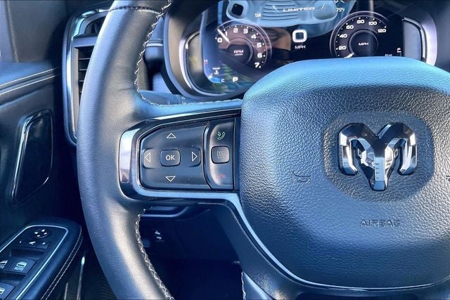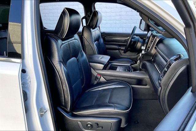 Limited Level 1 Equipment Group (Adaptive Cruise Control w/Stop & Go, Digital Rearview Mirror, harman/kardon 19 Speaker Premium Sound, Heads-Up Display, Lane Keep Assist, LED CHMSL Lamp, MOPAR Spray In Bedliner, Parallel & Perp Park Assist w/Stop, ParkSense Front/Rear Park Assist w/Stop, Pedestrian Emergency Braking, Pick-Up Box Lighting, Power Running Boards, Surround View Camera System, and Wireless Charging Pad), Trailer Tow Group (Trailer Brake Control, Trailer Light Check, Trailer Reverse Steering Control, and Trailer Tire Pressure Monitoring System), Quick Order Package 27M Limited, Navigation System, Wheels: 22 x 9 Polish/Painted w/Inserts, 10 Speakers, 33 Gallon Fuel Tank, 4 Way Front Headrests, 4-Wheel Disc Brakes, 48V Belt Starter Generator, ABS brakes, Active Noise Control System, Adjustable pedals, Air Conditioning, Alloy wheels, AM/FM radio: SiriusXM with 360L, Apple CarPlay/Android Auto, Audio memory, Auto High-beam Headlights, Auto-dimming door mirrors, Auto-Dimming Exterior Driver Mirror, Auto-dimming Rear-View mirror, Auto-leveling suspension, Automatic temperature control, Bodyside moldings, Brake assist, Bucket Seats, Bumpers: chrome, Chrome Exterior Mirrors, Compass, Convex Wide-Angle Exterior Mirror Insert, Delay-off headlights, Driver door bin, Driver Seat Memory, Driver vanity mirror, Dual front impact airbags, Dual front side impact airbags, Dual Rear Exhaust w/Bright Tips, Electronic Stability Control, Engine Block Heater, Exterior Mirrors Courtesy Lamps, Exterior Mirrors w/Heating Element, Exterior Mirrors w/Memory, Exterior Mirrors w/Supplemental Signals, Front anti-roll bar, Front Bucket Seats, Front Center Armrest w/Storage, Front dual zone A/C, Front fog lights, Front License Plate Bracket, Front reading lights, Front Seat Back Map Pockets, Front wheel independent suspension, Full Length Premium Floor Console, Fully automatic headlights, Garage door transmitter, Genuine wood console insert, Genuine wood dashboard insert, Genuine wood door panel insert, Heated door mirrors, Heated Front Seats, Heated front seats, Heated rear seats, Heated Second Row Seats, Heated Steering Wheel, Heated steering wheel, Heavy-Duty Engine Cooling, HEMI Badge, Illuminated entry, Leather steering wheel, Low tire pressure warning, Manufacturer's Statement of Origin, Memory seat, Occupant sensing airbag, Outside temperature display, Overhead airbag, Overhead console, Panic alarm, ParkView Rear Back-Up Camera, Passenger door bin, Passenger vanity mirror, Passive Tuned Mass Damper, Pedal memory, Power 4-Way Driver Lumbar Adjust, Power 4-Way Passenger Lumbar Adjust, Power 8-Way Driver & Passenger Seats, Power door mirrors, Power driver seat, Power passenger seat, Power steering, Power windows, Power-Folding Mirrors, Premium Leather Trimmed Bucket Seats, Radio data system, Radio: Uconnect 5 Nav w/12.0 Display, Rain sensing wipers, Rear 60/40 Folding Split Recline Seat, Rear anti-roll bar, Rear seat center armrest, Rear step bumper, Rear window defroster, Remote keyless entry, Se